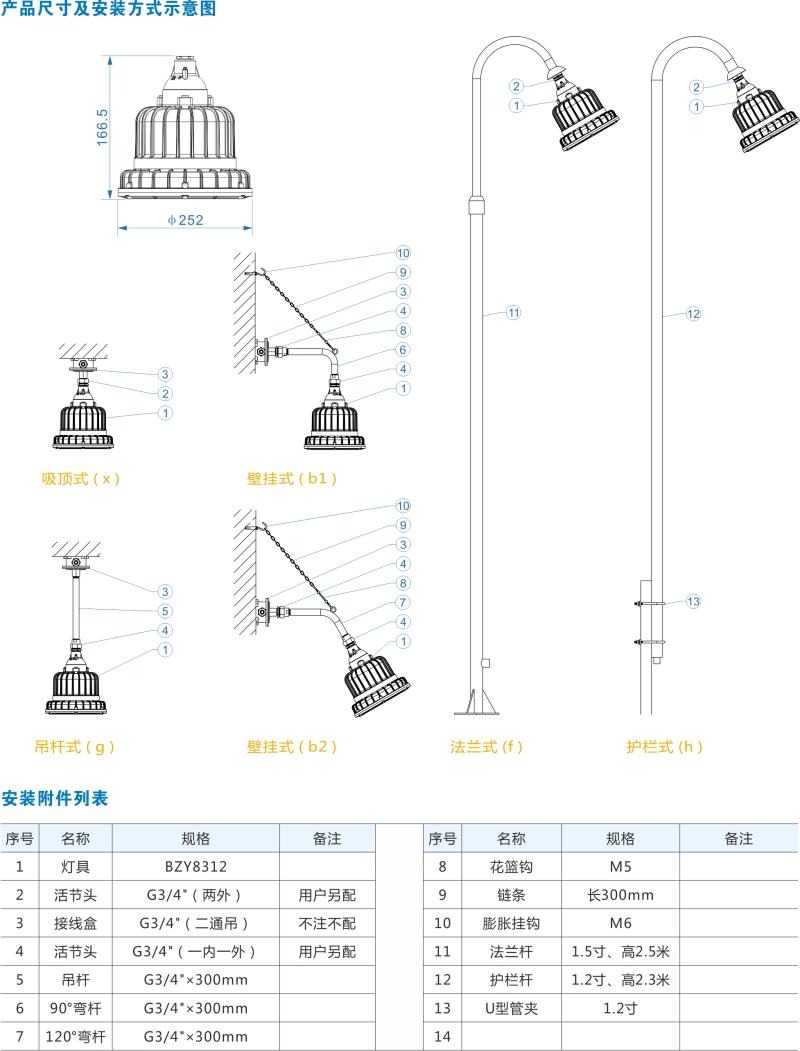 • 可加装内置应急装置,作停电应急照明用;如需订货时请注明。